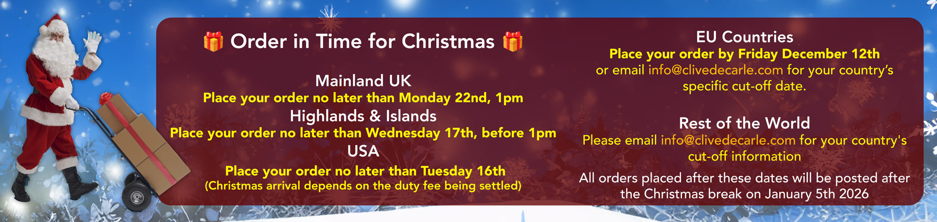 On August 29th 2025, the US government announced that all shipments from overseas will be subject to import tax. These charges are usually around 10% of your order value and are collected by Mark 3 International via a DPD payment link that is sent by text or email. If you have any questions, please contact Clive’s Angels at info@clivedecarle.com